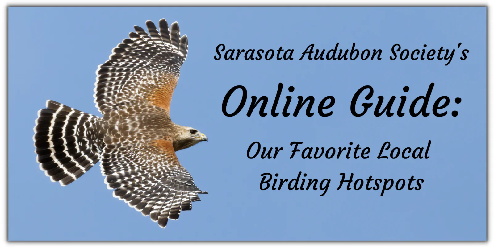 Sarasota County visitors and residents, especially those in the northern part of the County, may also appreciate several excellent Manatee County birding locations. Please see the Manatee Audubon Society web page (https://manateeaudubon.org/hotspots/) for information about birding hotspots in that County.